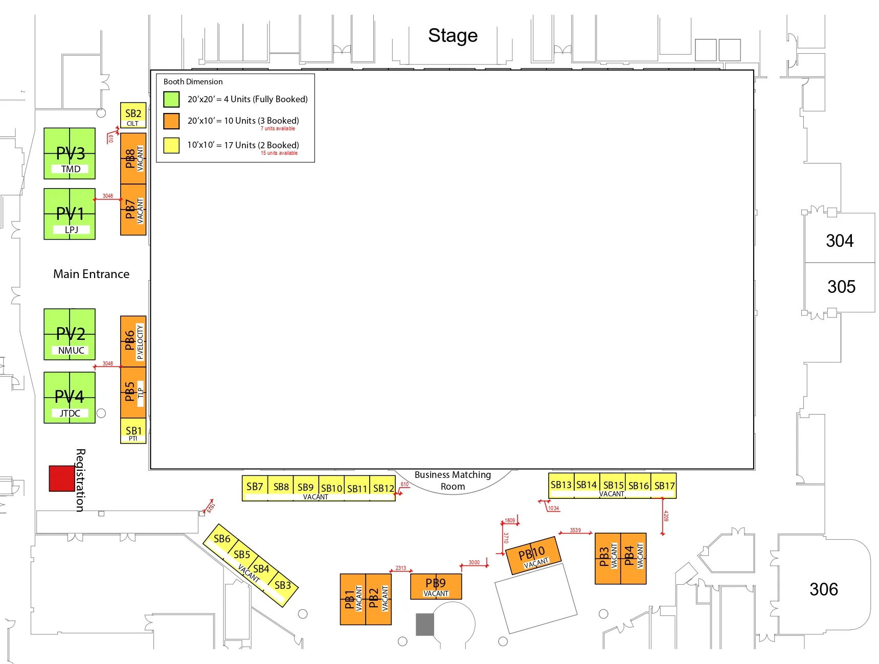 Exhibition booths available for lease will be allocated on first-come, first-served basis. The minimum available booth size is 9 square meters (10’x10’).